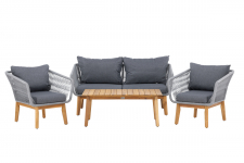 | Anyag: | Kanapégarnitúra akácfa vázzal és poliészter kárpitozással |