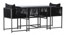 | Anyag: | Fekete acél étkezőgarnitúra és üveg asztallap |