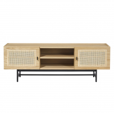 A természetes rattanból készült elegáns ajtók egyedi és modern megjelenést kölcsönöznek a TV-állványnak, miközben meleg és hívogató érzést adnak a szobának. Időtlen dizájnjának és semleges színeinek köszönhetően ez a TV-állvány könnyen kombinálható más bútorokkal és lakberendezési stílusokkal.